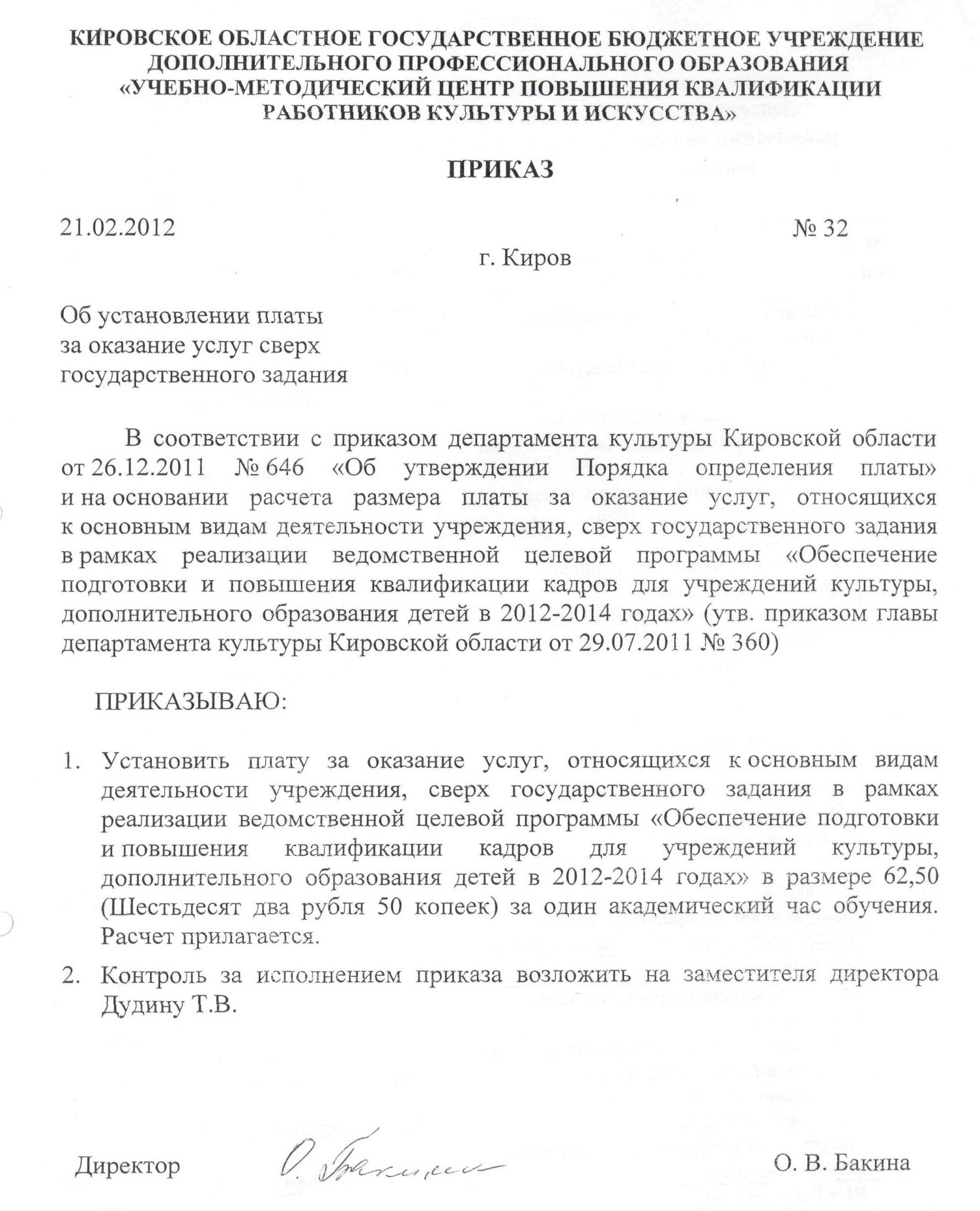 План по предоставлению платных образовательных услуг Кировского областного государственного бюджетного учреждения дополнительного профессионального образования «Учебно-методический центр повышения квалификации работников культуры и искусства» на 2012 год
